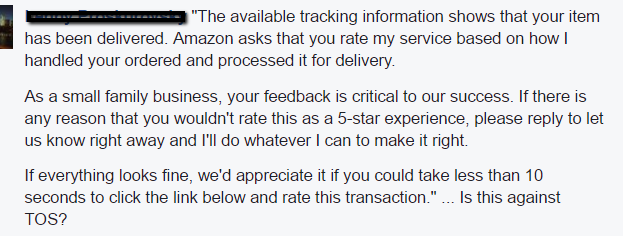 As I continued to read the entries in the thread, I found several other sellers claiming they had been suspended, too. They began to share accounts of their tales and questions about whether their follow-up email copy met Amazon’s terms of service (TOS).